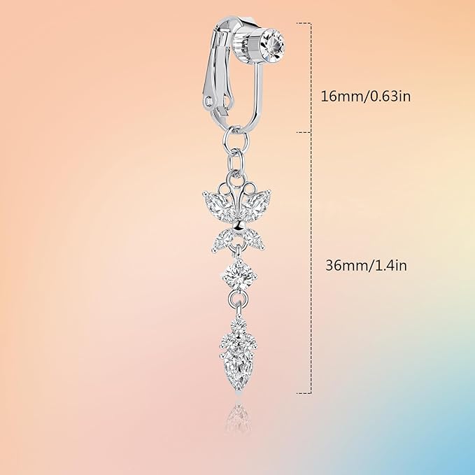 This Belly ring use Latest upgraded Clip-on Design, Different from Other Belly Button Rings Hard to Put on and Easy to fall off, this New Design of Belly Ring is Easier to wear, not easy to fall off, and Comfortable to wear, Unlike other Fake Belly Button Rings which are Difficult to put on and easy to fall off, Great Choice for those Who do not Want to Pierce But Want to Try Belly button Ring.
